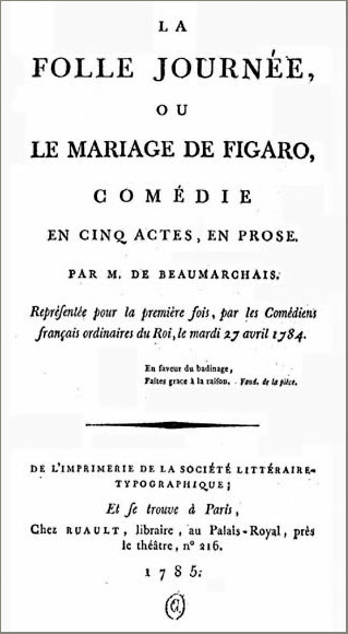 В 1786 году Моцарт напишет по её мотивам свою знаменитую оперу «Свадьба Фигаро».